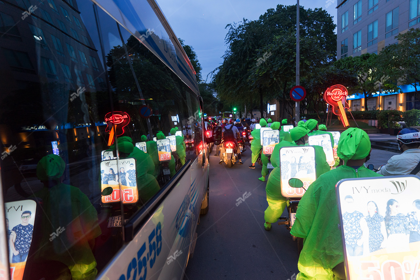 Quảng cáo trên xe máy là một loại hình quảng cáo mới lạ với chi phí thấp nhưng lại vô cùng ấn tượng. DriVadz đã phối hợp cùng Ivy Moda thực hiện 1 chiến dịch quảng cáo trên xe máy gắn frame quảng cáo phía đuôi xe.